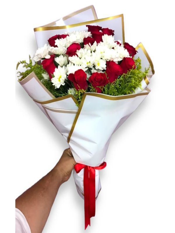 14 GÜL VE VE BEYAZ PAPATYALARDAN HAZIRLANMIŞ BUKET