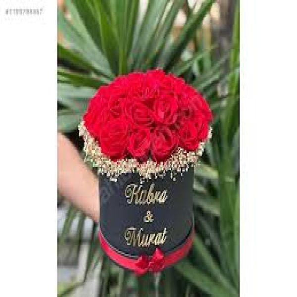 Kutu içerisine hazırlanmış yapay güllerle mutlu gününüzün en büyük anısı olan kız isteme çiçeğinizi saklıya bilirsiniz Kutu üzerine yazılaçak bilgileri şubemizle paylaşmanızı ricaederiz